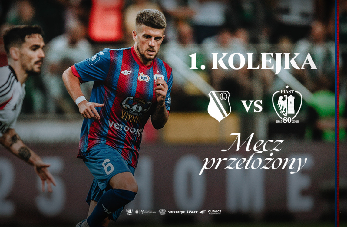 Informujemy, że mecz 1. kolejki PKO Bank Polski Ekstraklasy pomiędzy Piastem Gliwice a Legią Warszawa został przełożony. Wstępną datą rezerwową, wskazaną w terminarzu rozgrywek jest 14 grudnia 2025 roku.